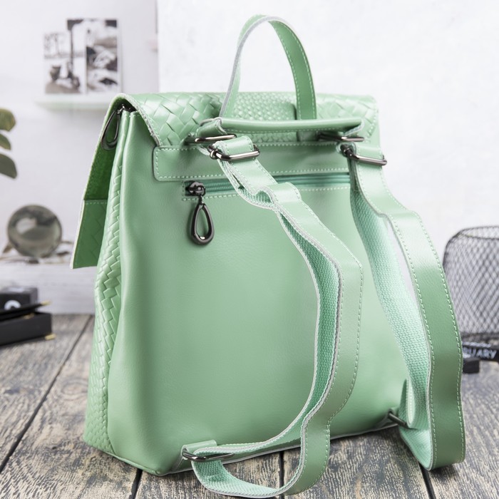Рюкзак молодёжный на молнии, 1 отдел, 2 наружных кармана, цвет зелёный