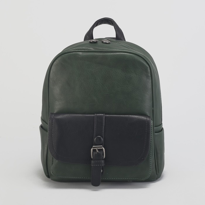 Рюкзак молодёжный, отдел, 3 наружных кармана, цвет зелёный