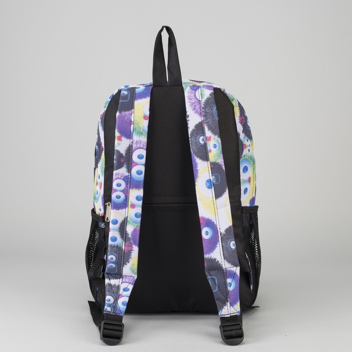 Рюкзак молодёжный, отдел на молнии, 2 наружных кармана, 2 боковые сетки, цвет чёрный/разноцветный