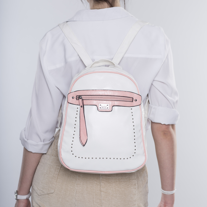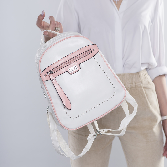 Рюкзак молодёжный, отдел на молнии, 2 наружных кармана, цвет белый/розовый