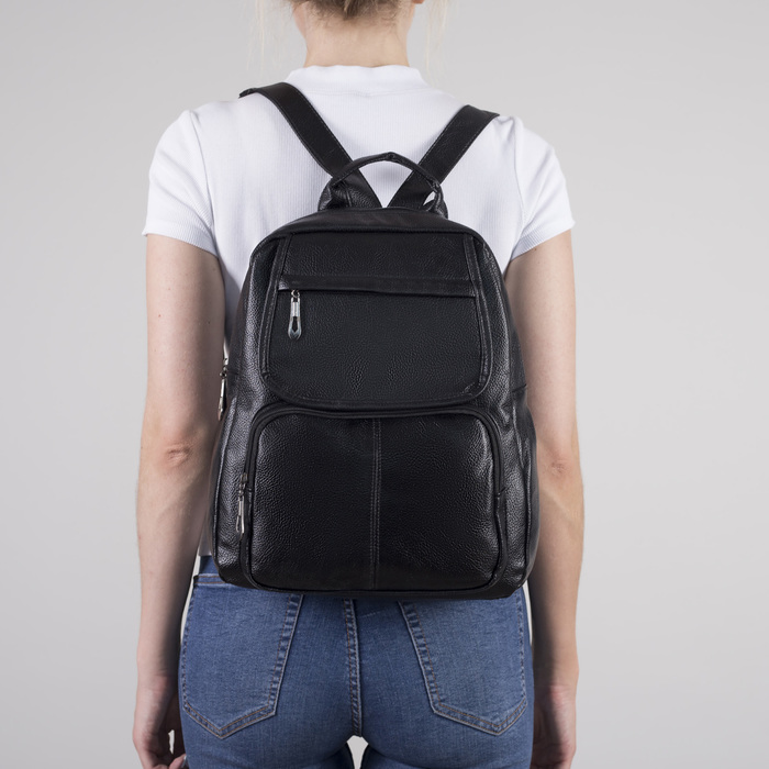 Рюкзак молодёжный, отдел на молнии, 2 наружных кармана, цвет чёрный