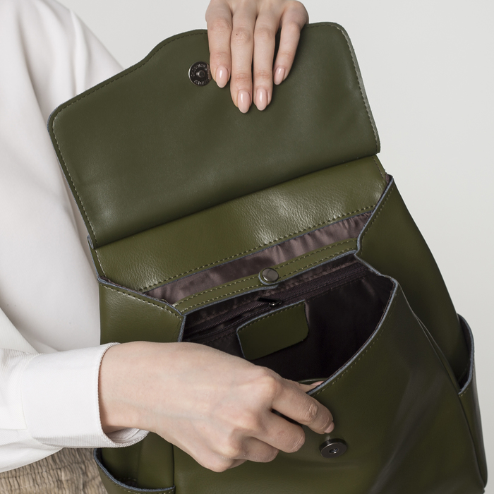 Рюкзак молодёжный, отдел на молнии, 3 наружных кармана, цвет болотный