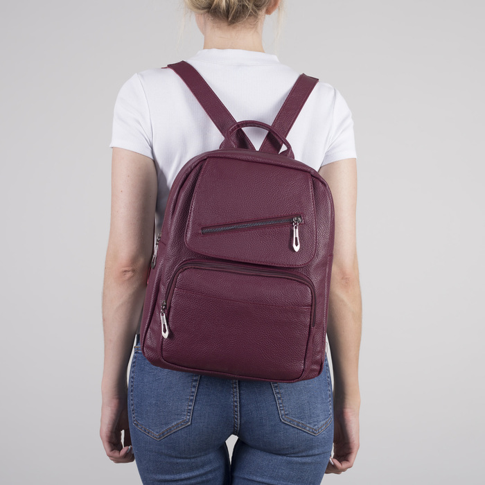 Рюкзак молодёжный, отдел на молнии, 3 наружных кармана, цвет бордовый