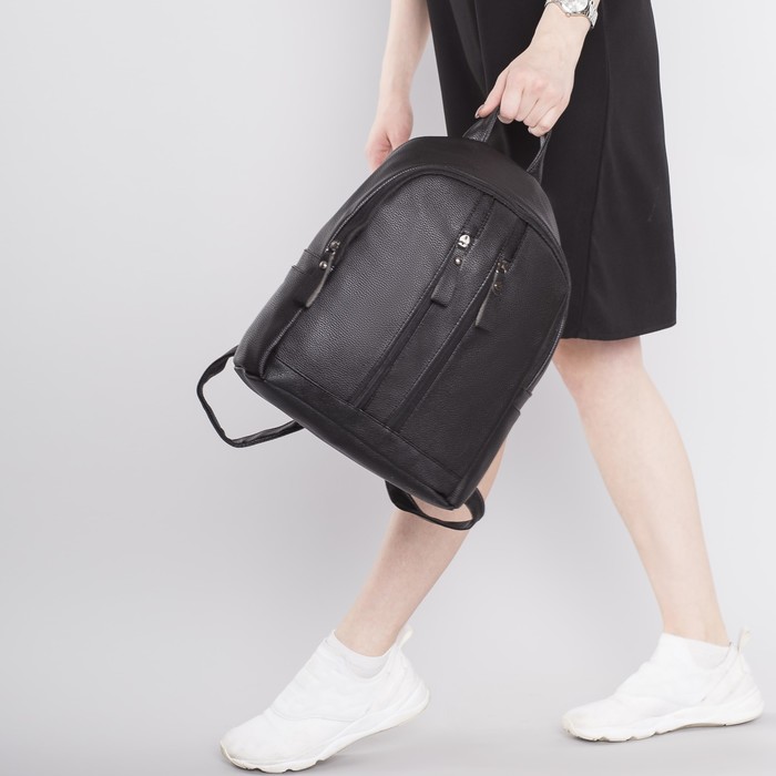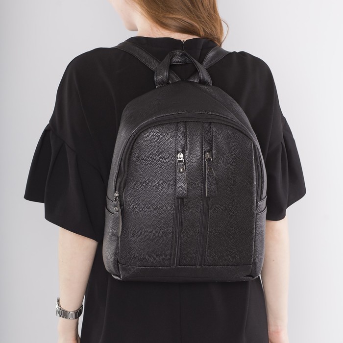Рюкзак молодёжный, отдел на молнии, 3 наружных кармана, цвет чёрный