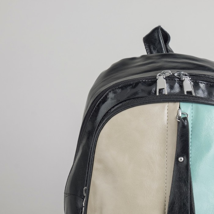 Рюкзак молодёжный, отдел на молнии, 3 наружных кармана, цвет чёрный/бежевый