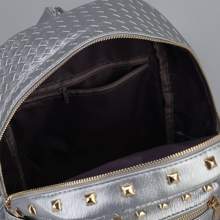 Рюкзак молодёжный, отдел на молнии, 3 наружных кармана, цвет серебристый