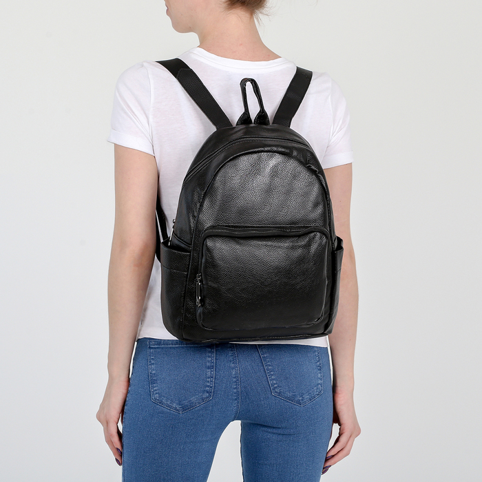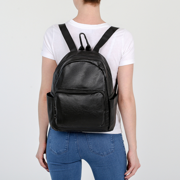 Рюкзак молодёжный, отдел на молнии, 4 наружных кармана, цвет чёрный
