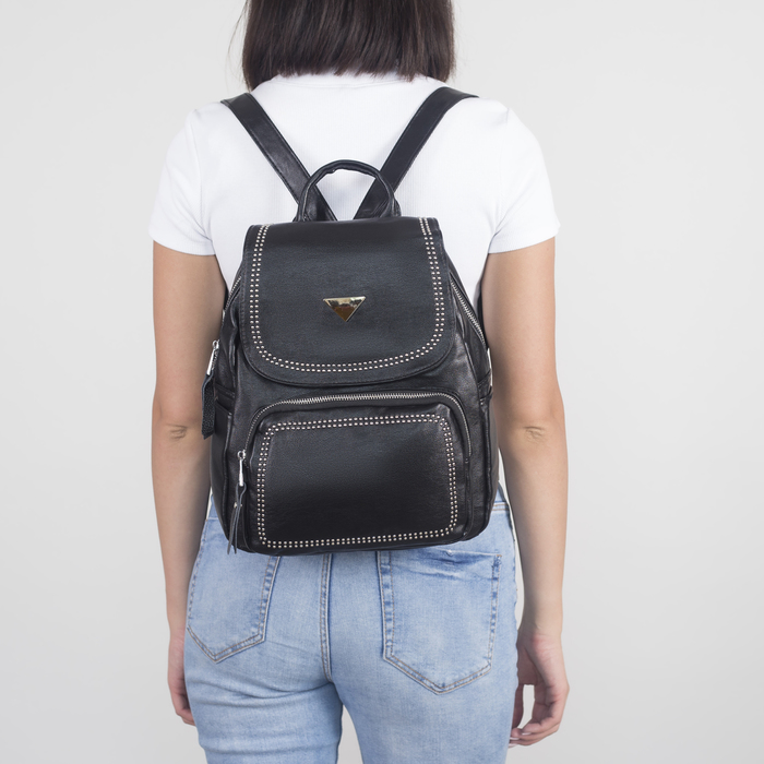 Рюкзак молодёжный, отдел на молнии, 4 наружных кармана, цвет чёрный