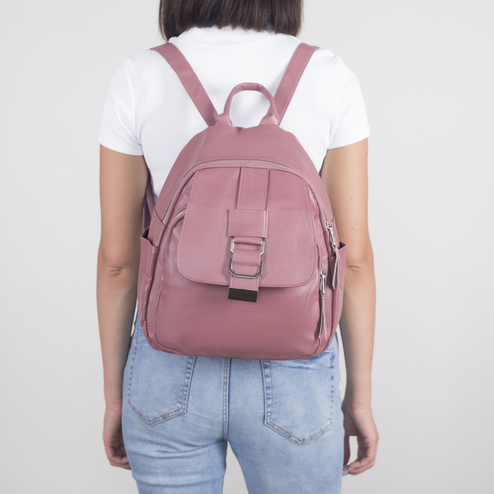 Рюкзак молодёжный, отдел на молнии, 4 наружных кармана, цвет пудровый