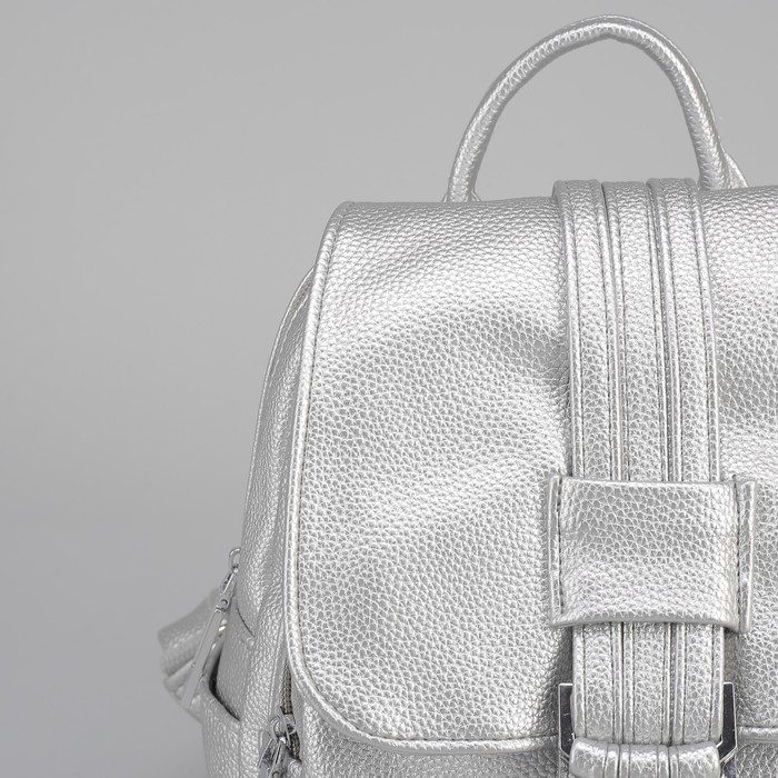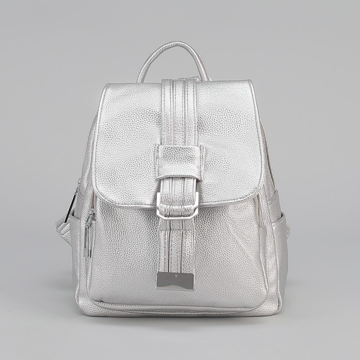 Рюкзак молодёжный, отдел на молнии, 4 наружных кармана, цвет серебристый