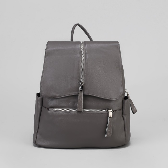 Рюкзак молодёжный, отдел на молнии, 4 наружных кармана, цвет серый