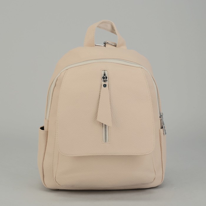 Рюкзак молодёжный, отдел на молнии, 5 наружных карманов, цвет бежевый