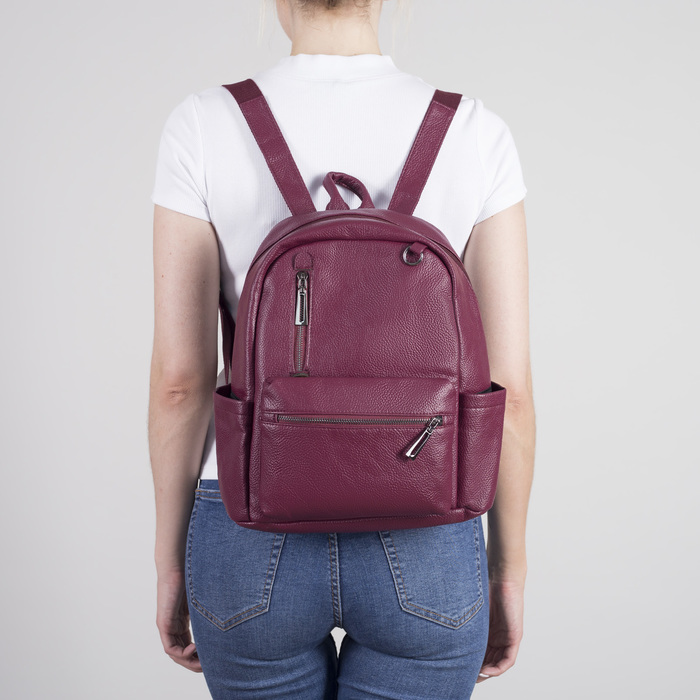 Рюкзак молодёжный, отдел на молнии, 5 наружных карманов, цвет бордовый