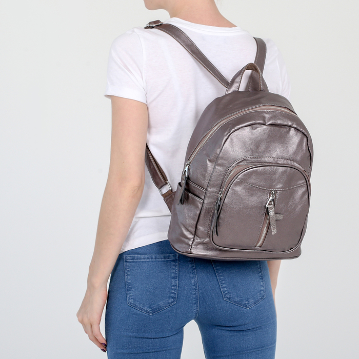 Рюкзак молодёжный, отдел на молнии, 5 наружных карманов, цвет бронзовый