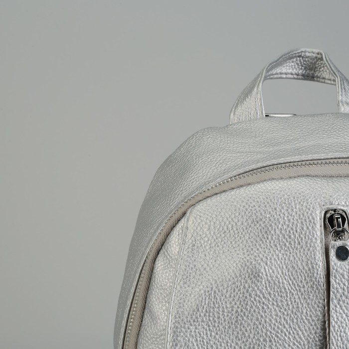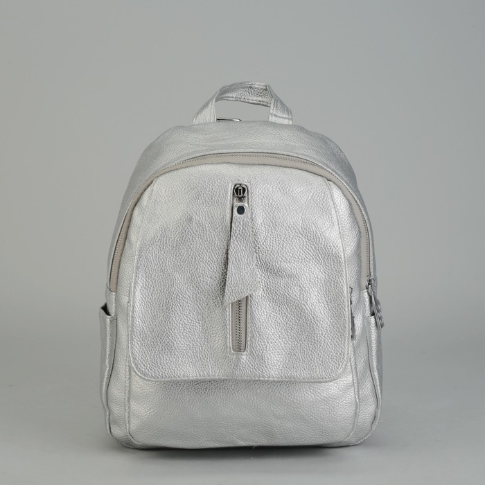 Рюкзак молодёжный, отдел на молнии, 5 наружных карманов, цвет серебристый