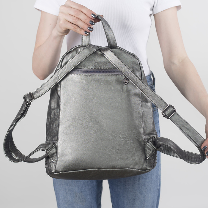 Рюкзак молодёжный, отдел на молнии, наружный карман, цвет серебристый