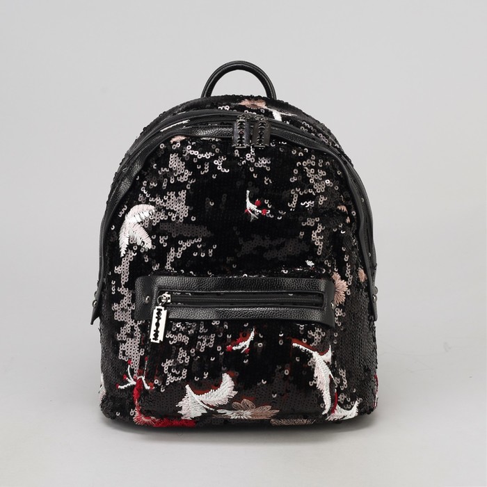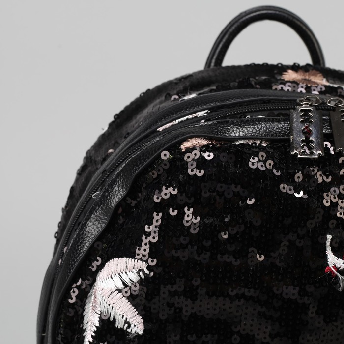 Рюкзак молодёжный, отдел на молнии, наружный карман, пайетки, цвет чёрный