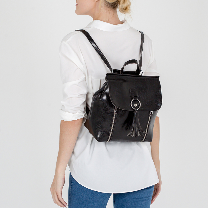 Рюкзак молодёжный, отдел на молнии, с расширением, 2 наружных кармана, цвет чёрный