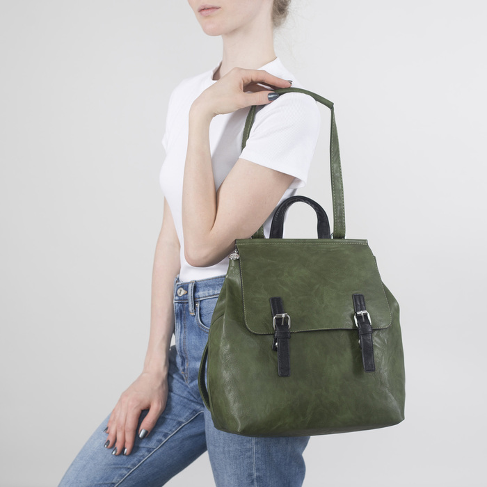 Рюкзак молодёжный, отдел, с расширением, наружный карман, цвет зелёный