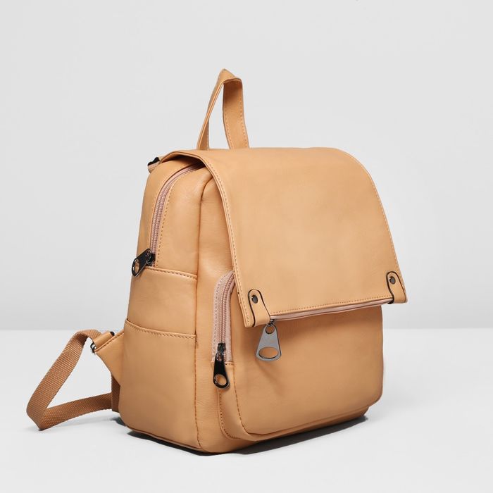 Рюкзак на молнии, 1 отдел, 4 наружных кармана, цвет бежевый