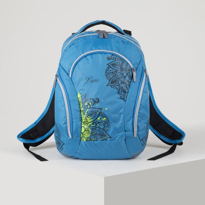 Рюкзак на молнии, 2 отдела, 3 наружных кармана, цвет бирюзовый