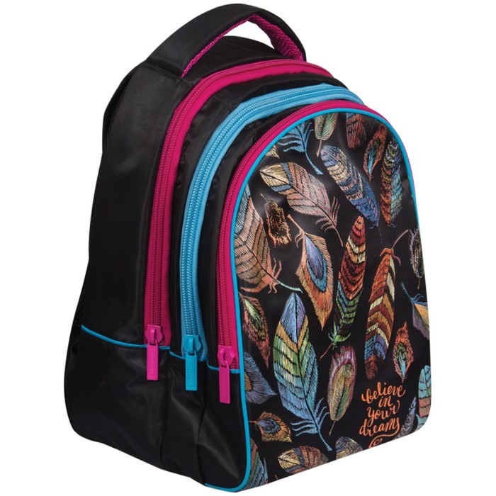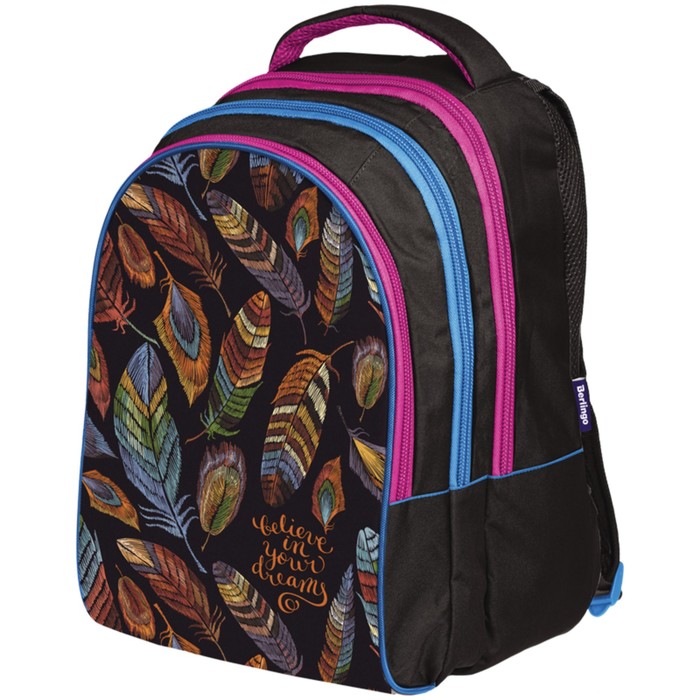 Рюкзак на молнии Berlingo Style Feathers, 3 отделения, 1 карман, разноцветный
