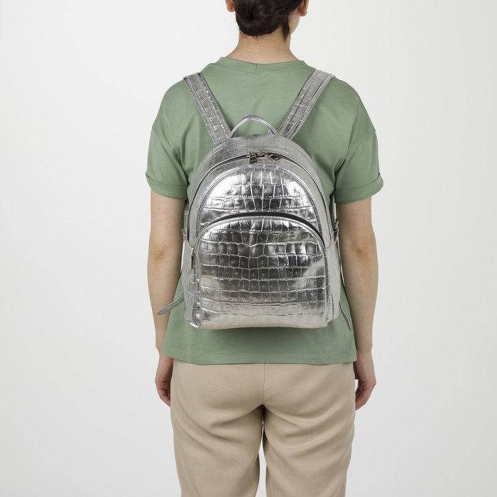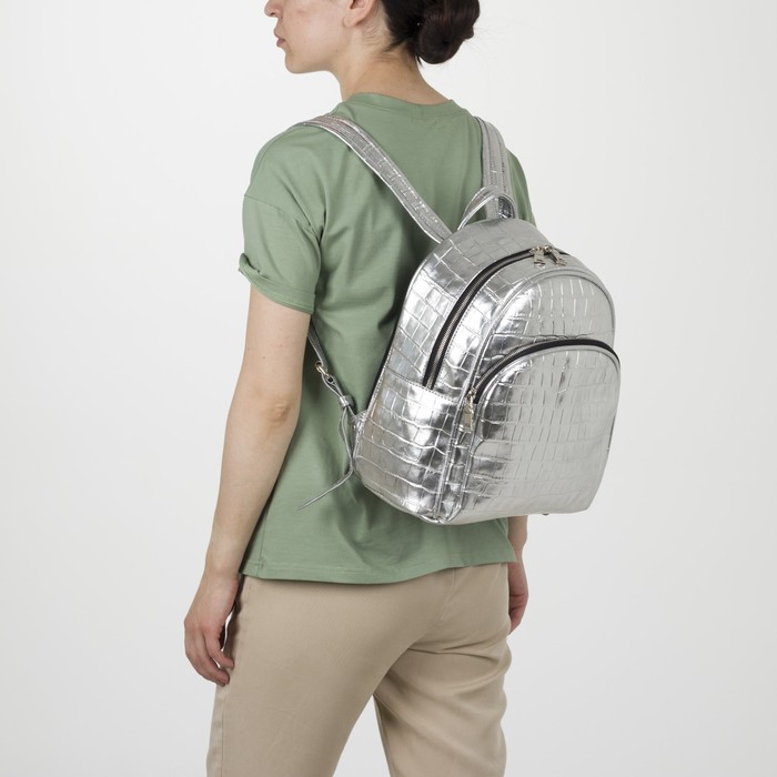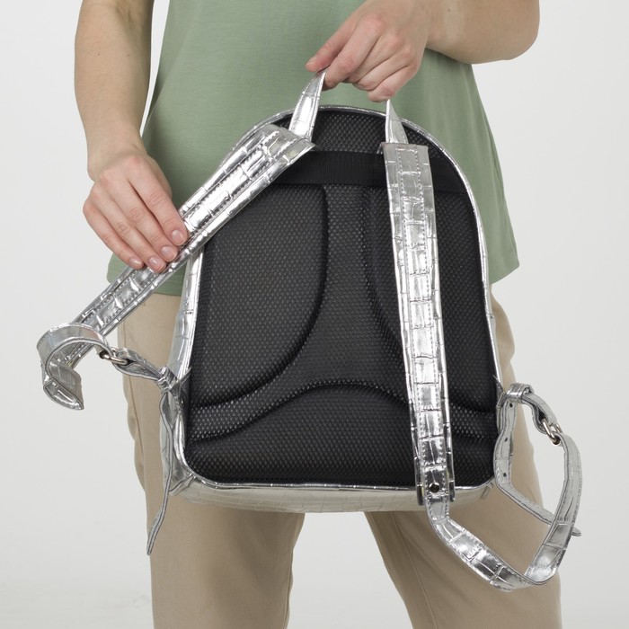 Рюкзак на молнии, эргономичная спинка, 1 отдел, наружный карман, цвет серебряный