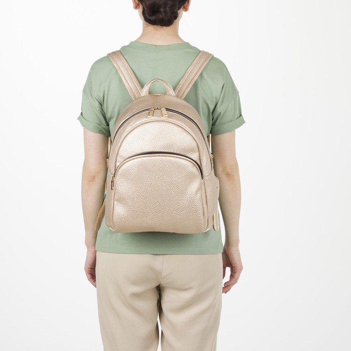 Рюкзак на молнии, эргономичная спинка, 1 отдел, наружный карман, цвет золотой