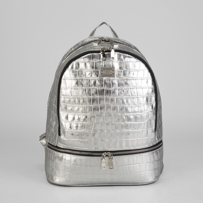 Рюкзак на молнии, эргономичная спинка, наружный карман, цвет серебряный