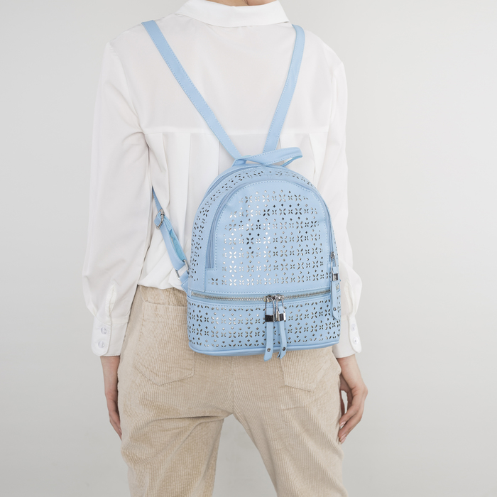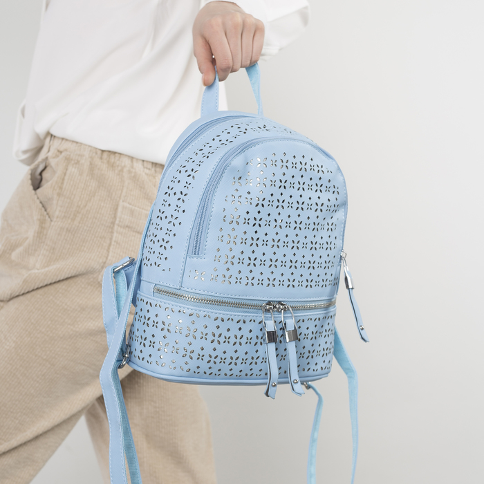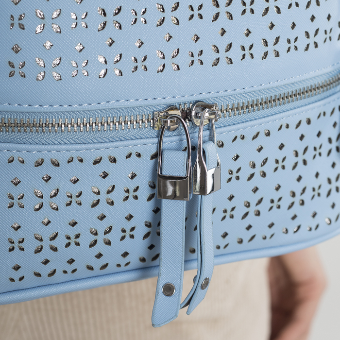 Рюкзак "Перфорация", 2 отдела на молниях, наружный карман, цвет голубой