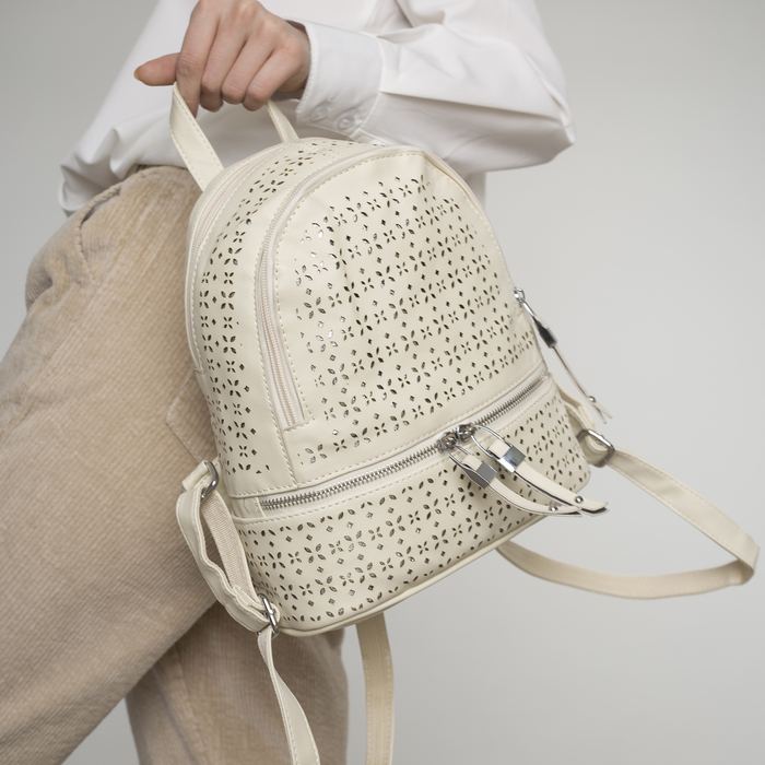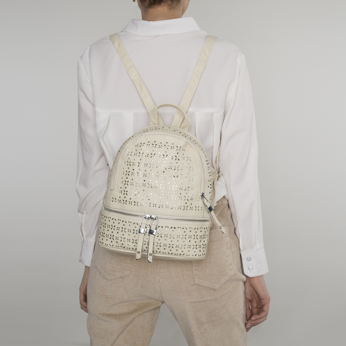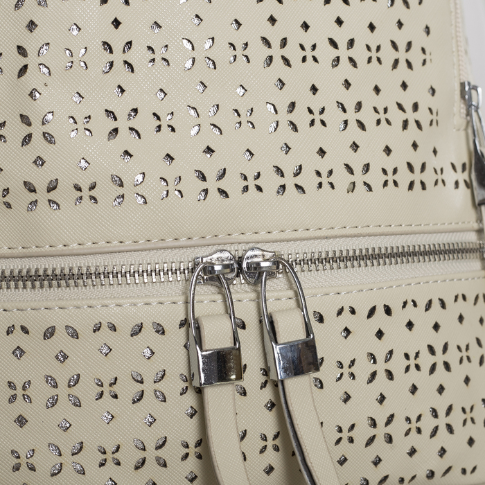 Рюкзак "Перфорация", 2 отдела на молниях, наружный карман, цвет молочный