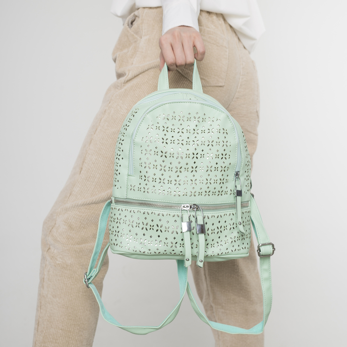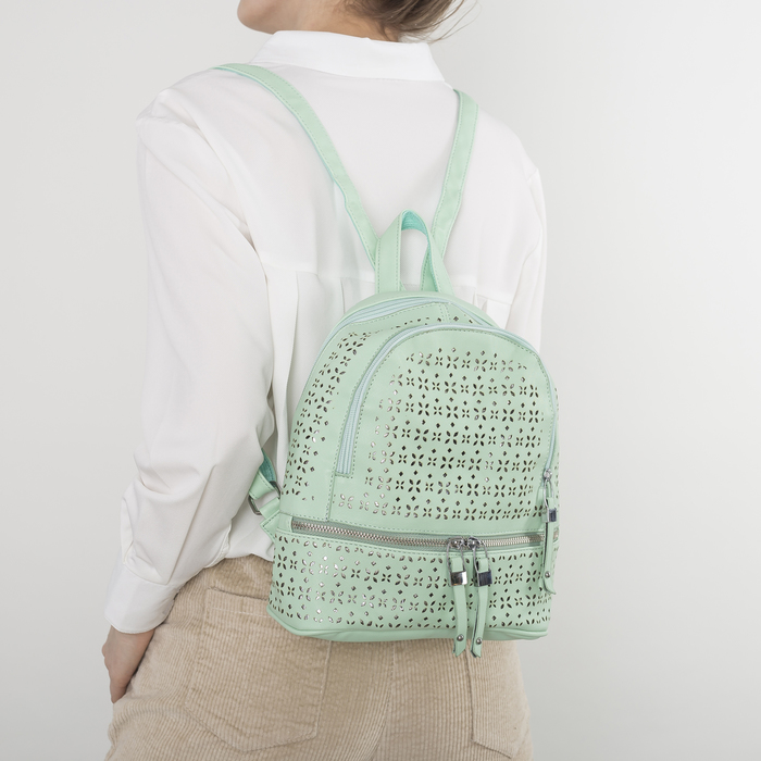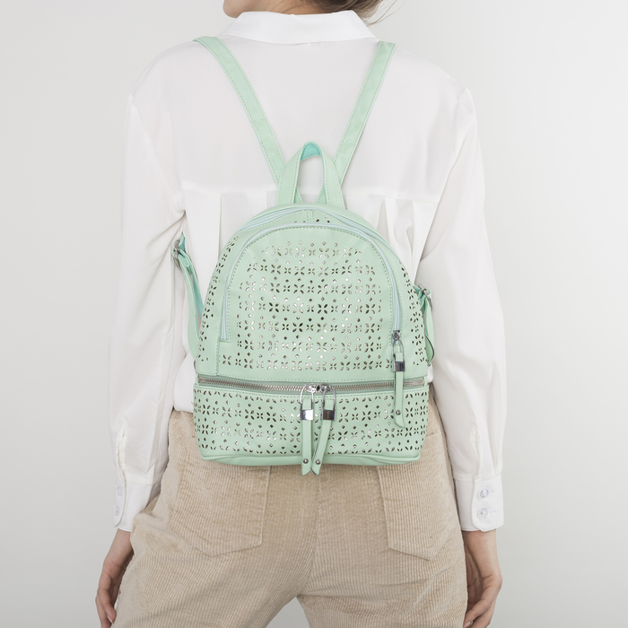 Рюкзак "Перфорация", 2 отдела на молниях, наружный карман, цвет мятный