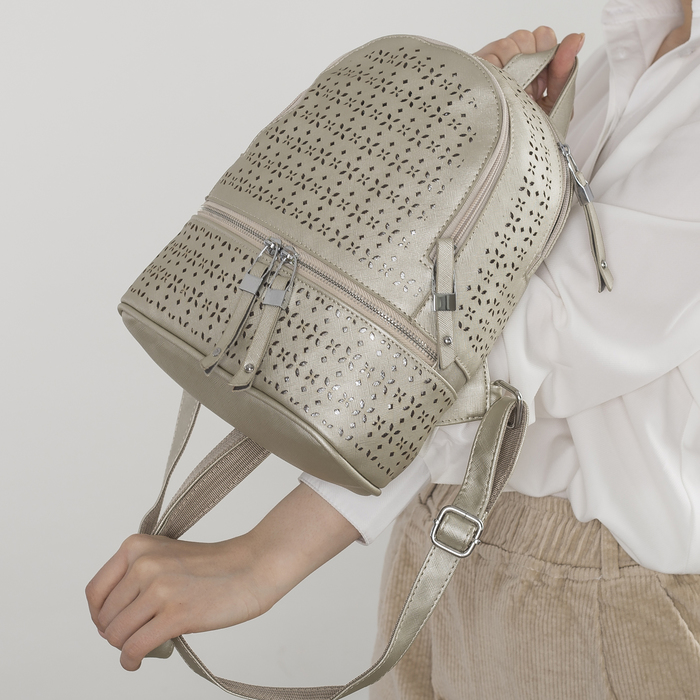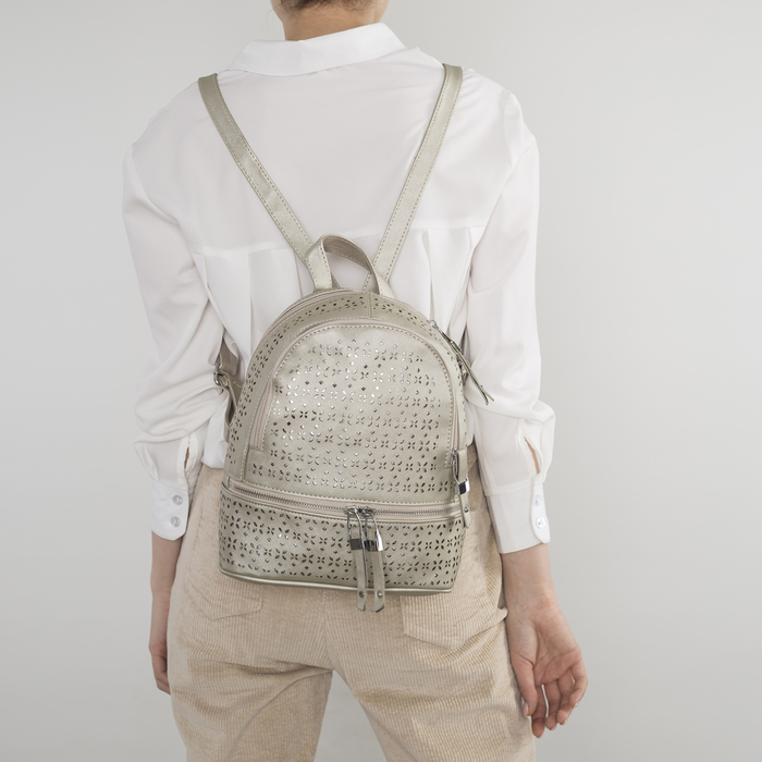 Рюкзак "Перфорация", 2 отдела на молниях, наружный карман, цвет серый