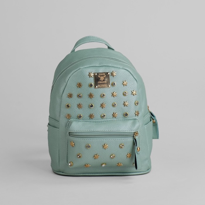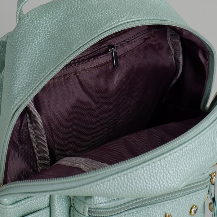 Рюкзак с отделом на молнии, 3 наружных кармана, цвет мятный