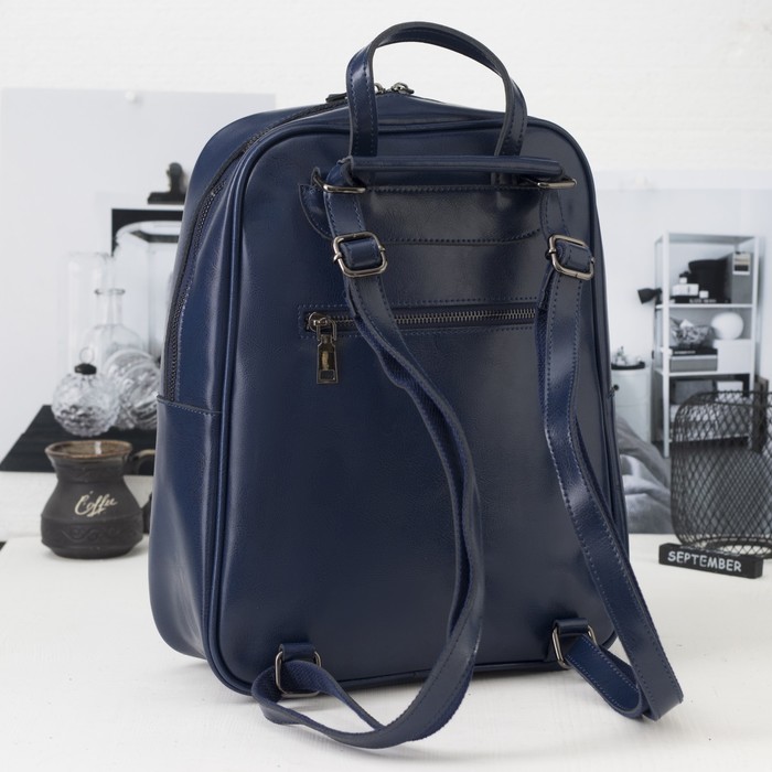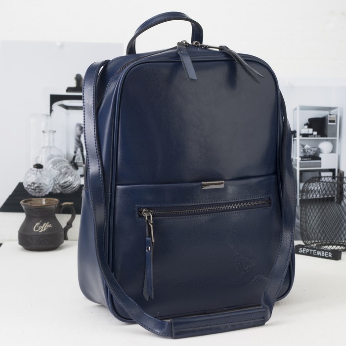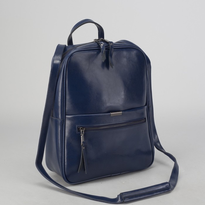 Рюкзак с отделом на молнии, 3 наружных кармана, цвет синий