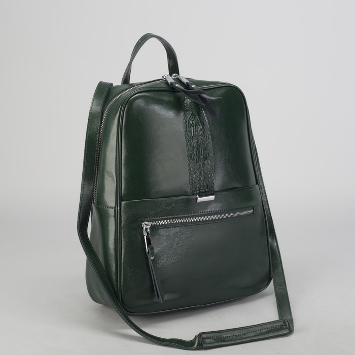 Рюкзак с отделом на молнии, 3 наружных кармана, цвет зелёный