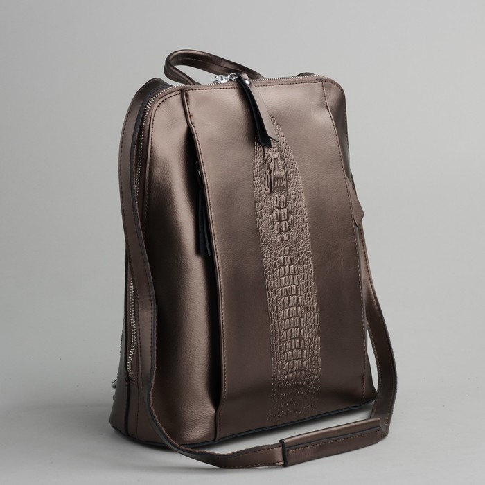 Рюкзак с перегородкой на молнии, 3 наружных кармана, цвет бронзовый