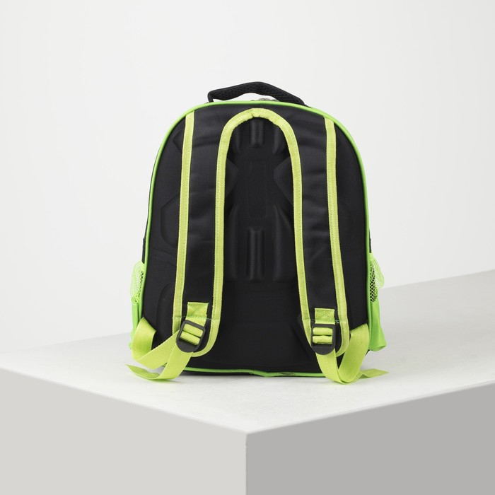 Рюкзак школ Авто, 29*15*40, отд на молнии, н/карман, 2 бок сетки, усил спинка, черн/зеленый 282616