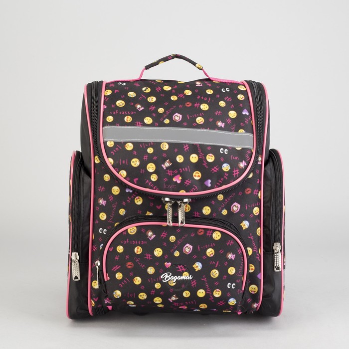 Рюкзак школьный "Смайлики", 1 отдел на молнии, 3 наружных кармана, цвет чёрный