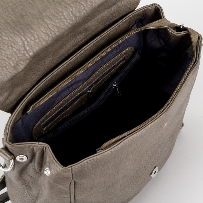 Рюкзак-сумка, отдел на молнии, 3 наружных кармана, цвет зелёный