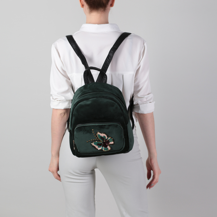 Рюкзак женский, бархат, отдел, наружный карман, цвет зелёный