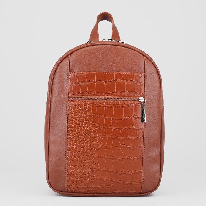 Рюкзак женский, отдел на молнии, 2 наружных кармана, крокодил рыжий