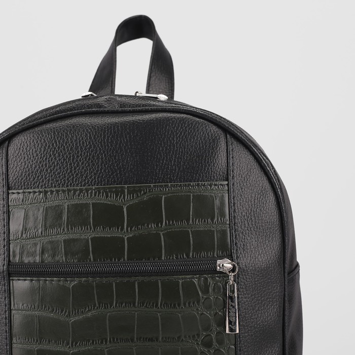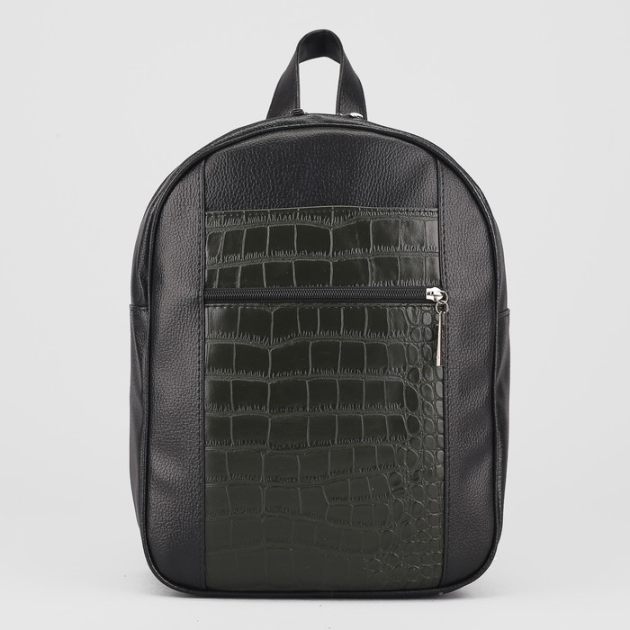 Рюкзак женский, отдел на молнии, 2 наружных кармана, крокодил тёмно-зелёный