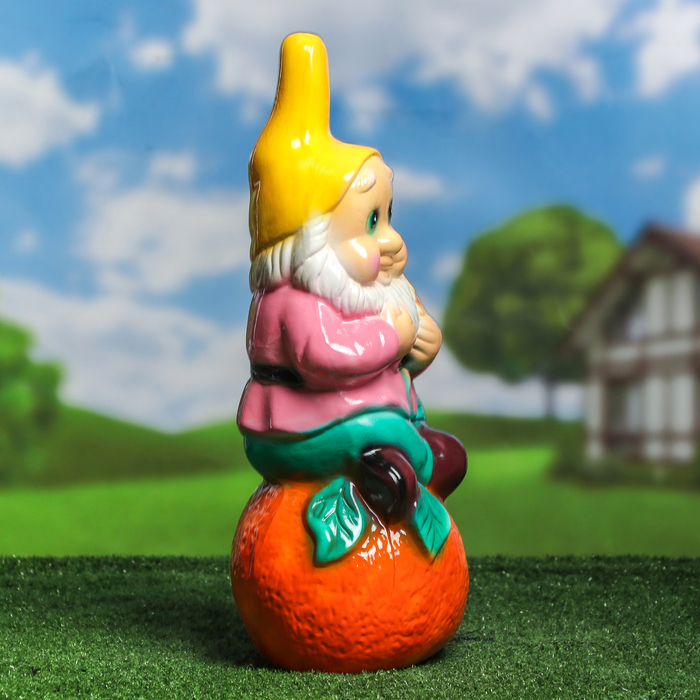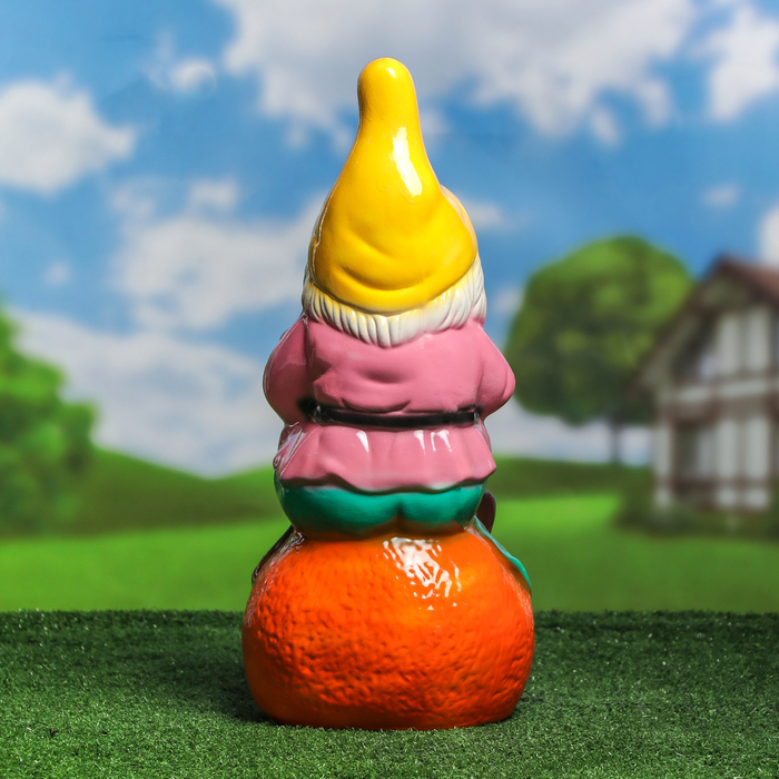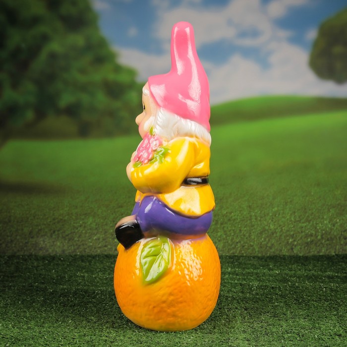Садовая фигура "Гном на апельсине" глянец розово-желтый