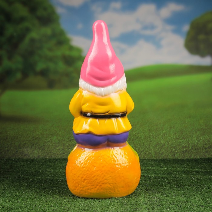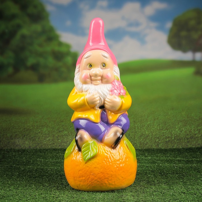 Садовая фигура "Гном на апельсине" глянец розово-желтый будет охранять урожай и приносить удачу. Удивите гостей и порадуйте близких — поселите у себя на дачном участке весёлого жильца.