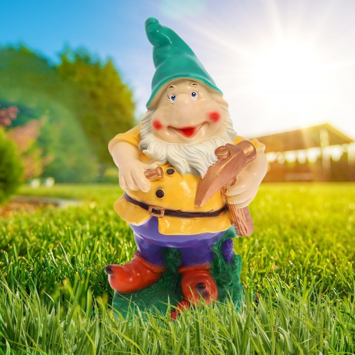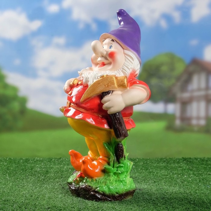 Садовая фигура "Гном с киркой", 41 см будет охранять урожай и приносить удачу. Удивите гостей и порадуйте близких — поселите у себя на дачном участке весёлого жильца.