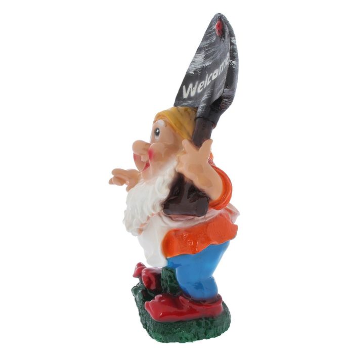 Садовая фигура "Гном с лопатой в жёлтой шапке welcome" 18*44 см