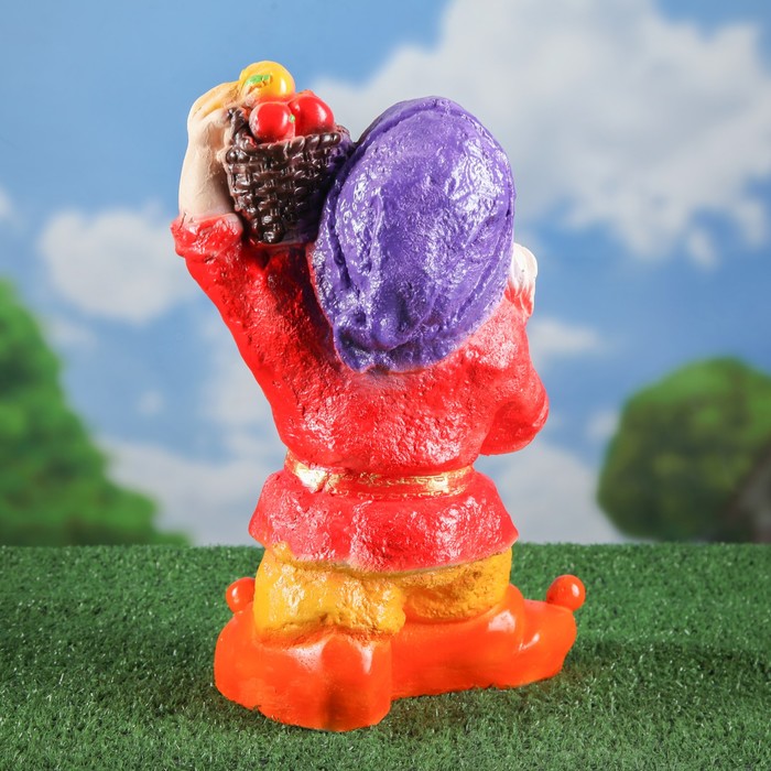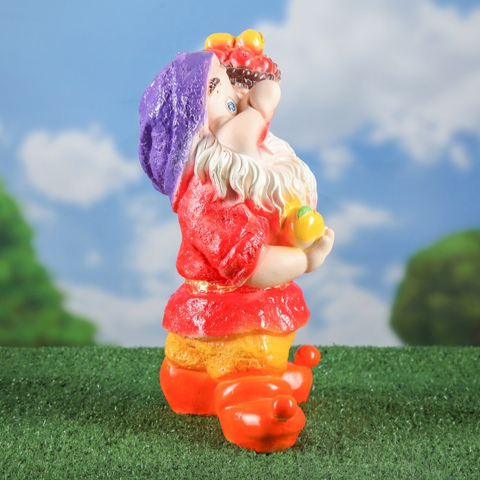 Садовая фигура "Гном с яблоками", 40 см будет охранять урожай и приносить удачу. Удивите гостей и порадуйте близких — поселите у себя на дачном участке весёлого жильца.