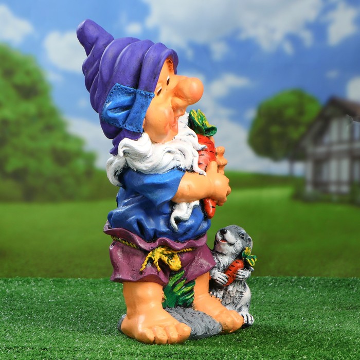 Садовая фигура "Гном с зайцем", 47 см будет охранять урожай и приносить удачу. Удивите гостей и порадуйте близких — поселите у себя на дачном участке весёлого жильца.