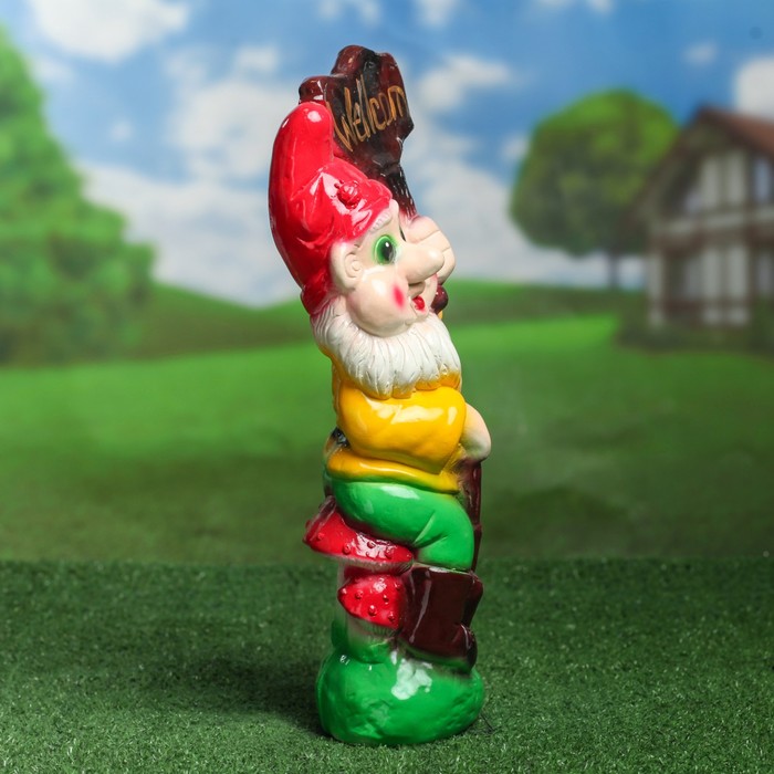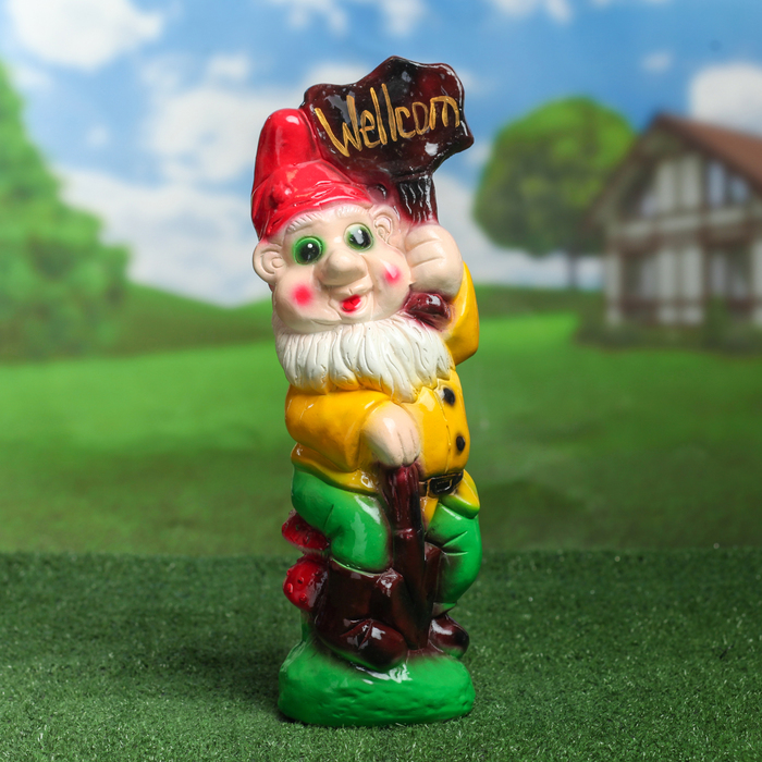 Садовая фигура "Гном Велком", микс будет охранять урожай и приносить удачу. Удивите гостей и порадуйте близких — поселите у себя на дачном участке весёлого жильца.